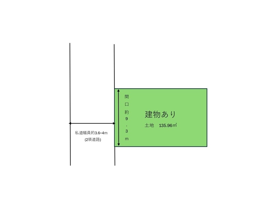 | 接道状況 | 西側私道幅員約3.6~4mに約9.3m接道 | |
